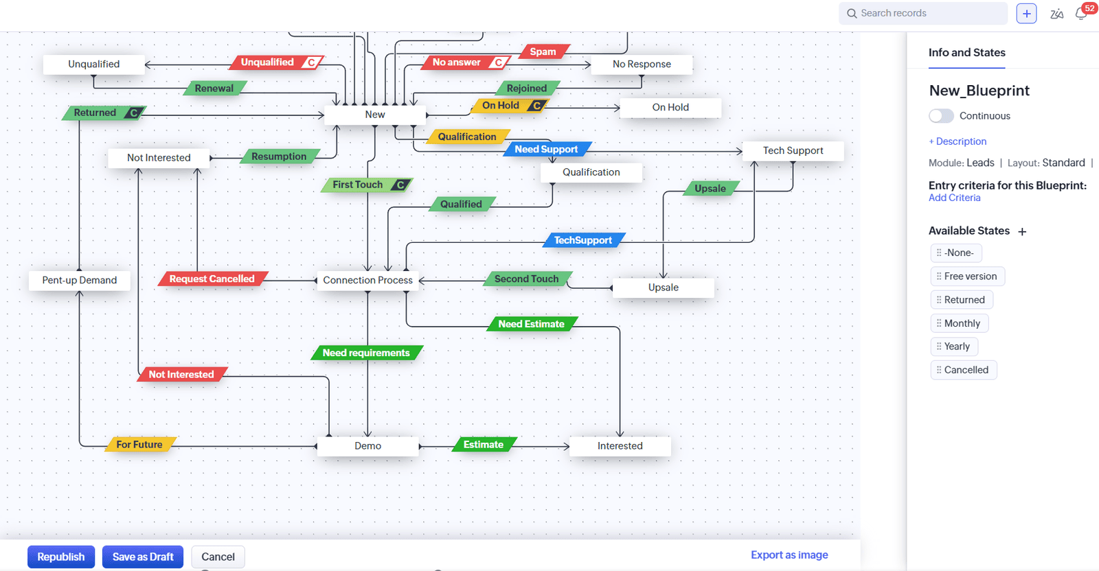 This is particularly valuable for B2B with long sales cycles—no lead can "fall through the cracks" because the system simply won't allow the next stage to proceed until the required actions have been completed.