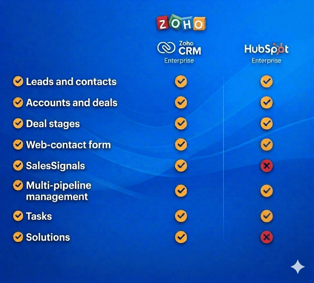 Zoho and HubSpot slightly different pricing models. Both can work well—it mainly depends on which one suits your planning style.